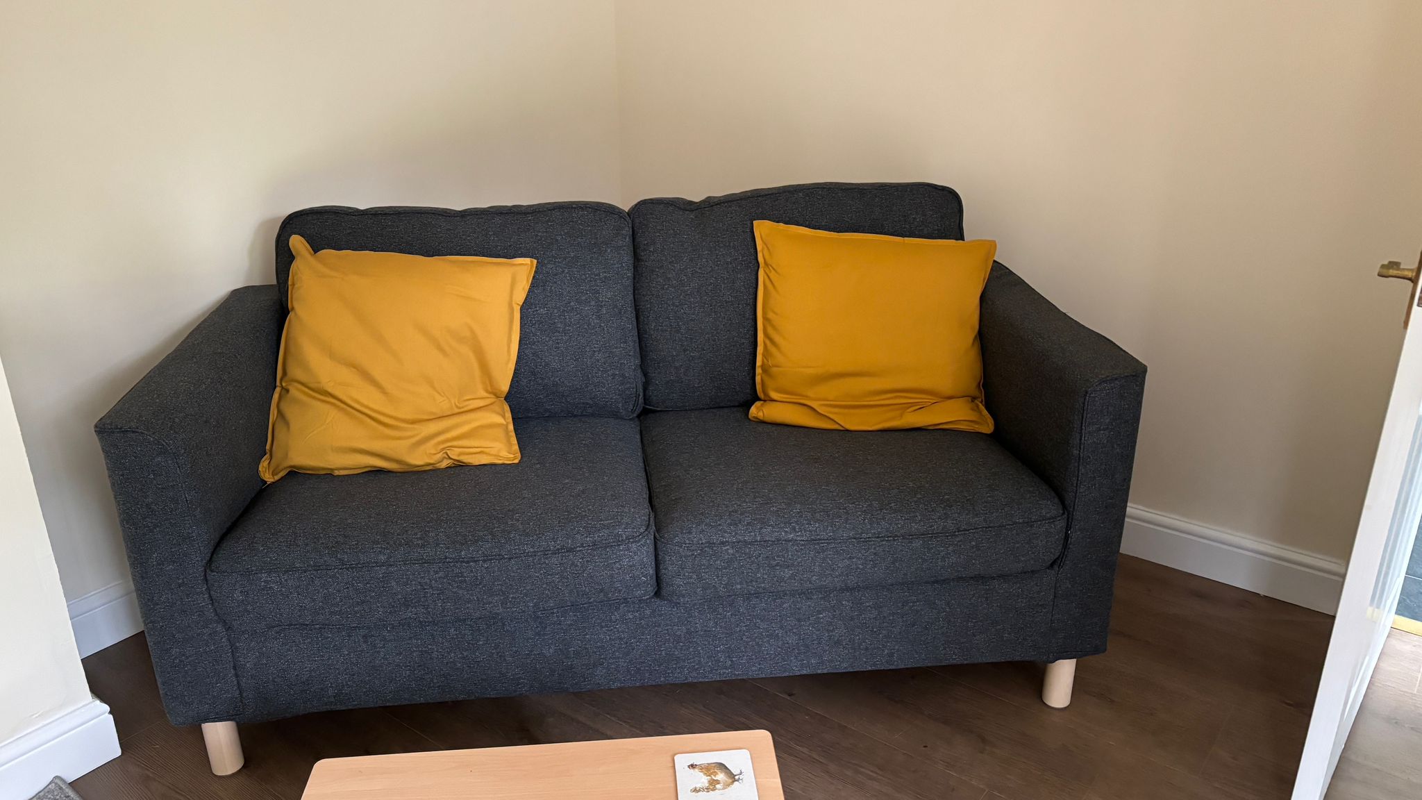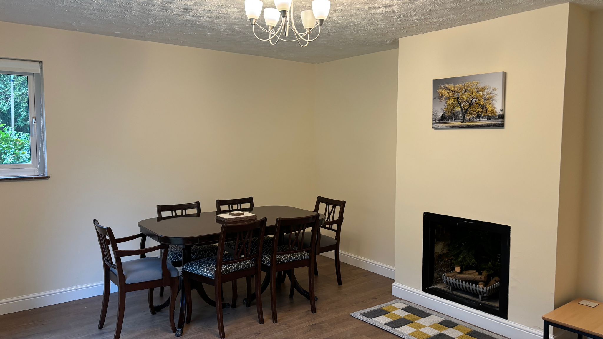 • Lounge with dining room table, sofa and 2 soft chairs.