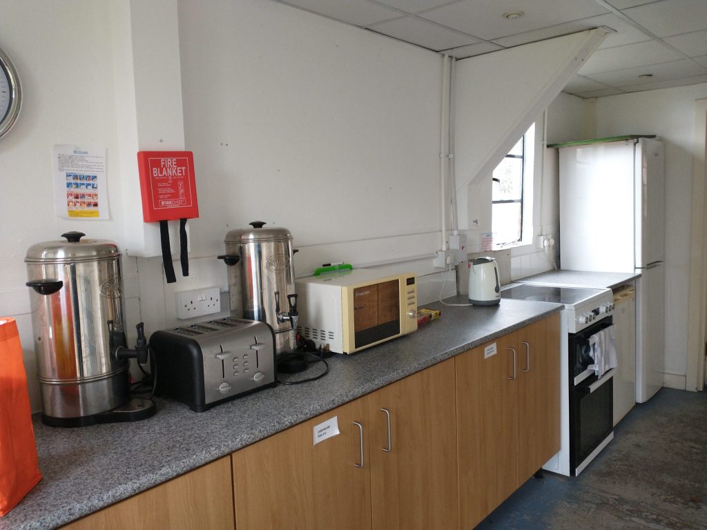 • Kitchen has electric cooker, fridge, freezer, microwave, kettle, urn, some utensils, crockery & cutlery
